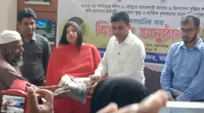 স্টাফ রিপোর্টারঃ ময়মনসিংহ সদরে কৃষি প্রণোদনা কর্মসূচির আওতায় ২০২৫-২৬ অর্থবছরে খরিপ-২ মাসকালাই ফসলের উৎপাদন বৃদ্ধির লক্ষ্যে ক্ষুদ্র ও প্রান্তিক কৃষকদের মাঝে বিনামূল্যে বীজ ও রাসায়নিক সার বিতরণ করা হয়েছে। সোমবার
