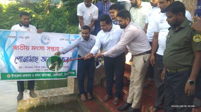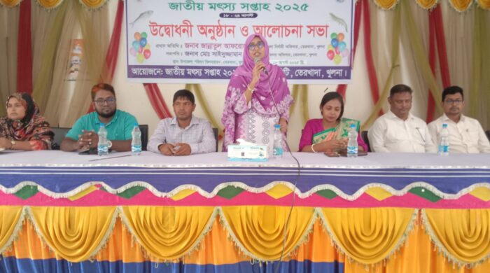 ডেস্ক রিপোর্ট: খুলনা জেলার তেরখাদা উপজেলা মৎস্য অধিদপ্তরের আয়োজনে জাতীয় মৎস্য সপ্তাহ-২০২৫ এর উদ্বোধন উপলক্ষে র্যালি , মৎস্য পোনা অবমুক্ত অবমুক্তকরণ ও আলোচনা সভা অনুষ্ঠিত হয়। সোমবার (১৮ ই আগস্ট)